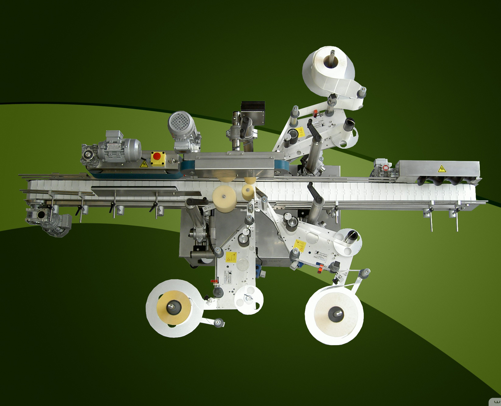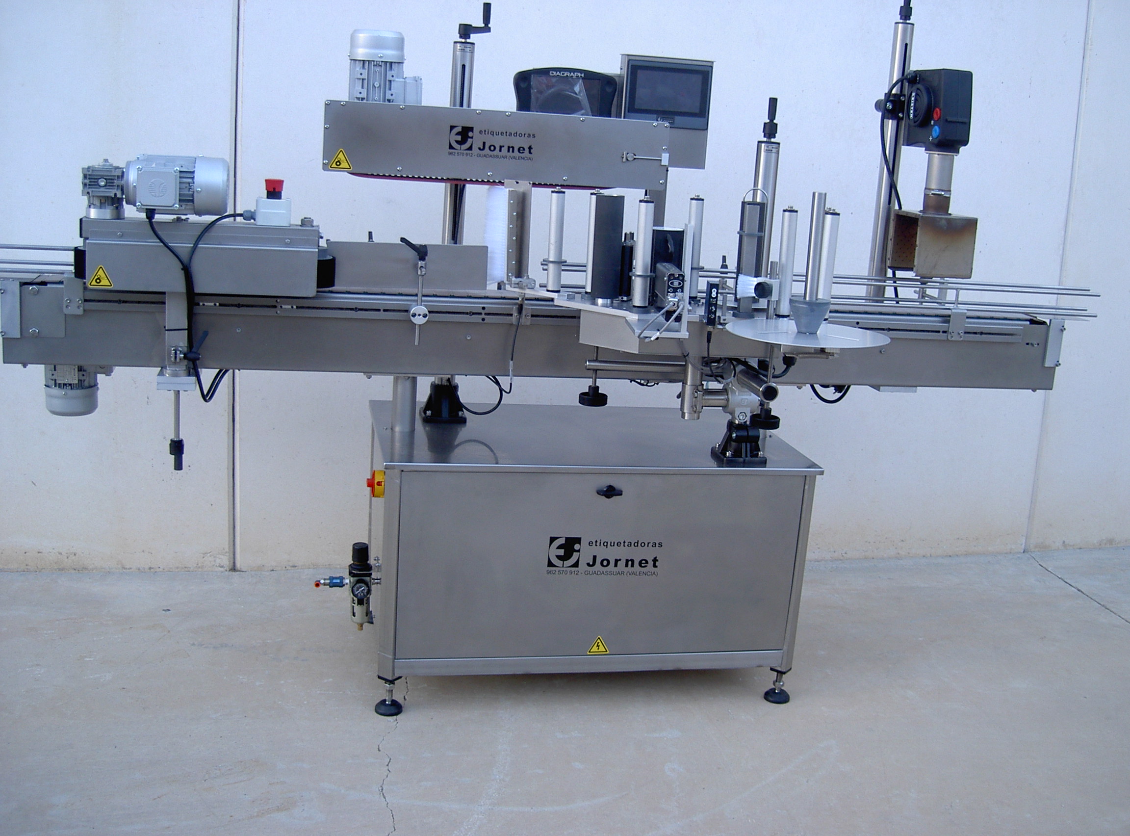 Esta línea de etiquetado está dotada para la colocación de etiqueta, contraetiqueta y certificado del consejo regulador o cualquier otro tipo de etiqueta que se quiera añadir, como por ejemplo el collarín.