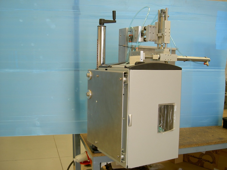 Podemos adaptar una impresora en tiempo real para cualquier tipo de aplicación, y si es necesario diseñar un mecanismo neumático para colocar etiquetas en el lugar y posición deseada.